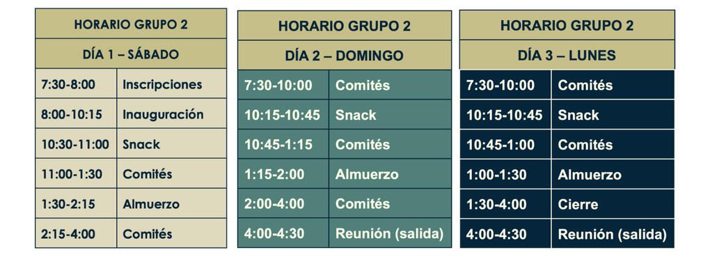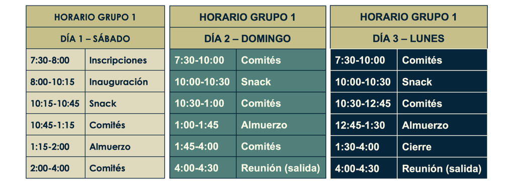 HORARIOS PARA LOS 3 DÍAS